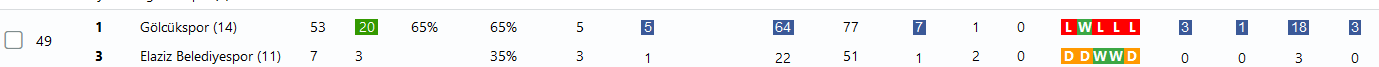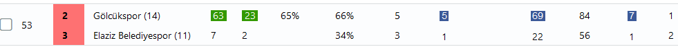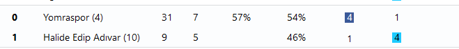In this Turkish league match, Yomraspor has had double or more shots on target, so their cell is shaded dark blue. Meanwhile, the away team has had double or more shots off target, resulting in a light blue shade. These colors help quickly pinpoint when a team is in control—especially when multiple cells are shaded.
